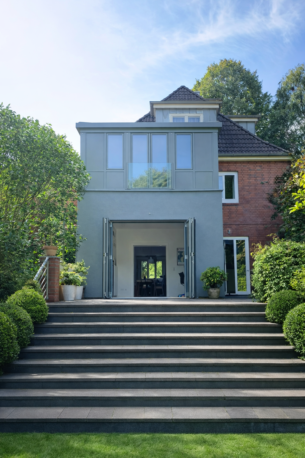 Ein Anbau an ein solches Haus erfordert daher besondere Sorgfalt. Einerseits muss die bestehende architektonische Sprache respektiert werden, andererseits soll der neue Teil moderne Bedürfnisse an Raum, Energieeffizienz und Wohnkomfort erfüllen.